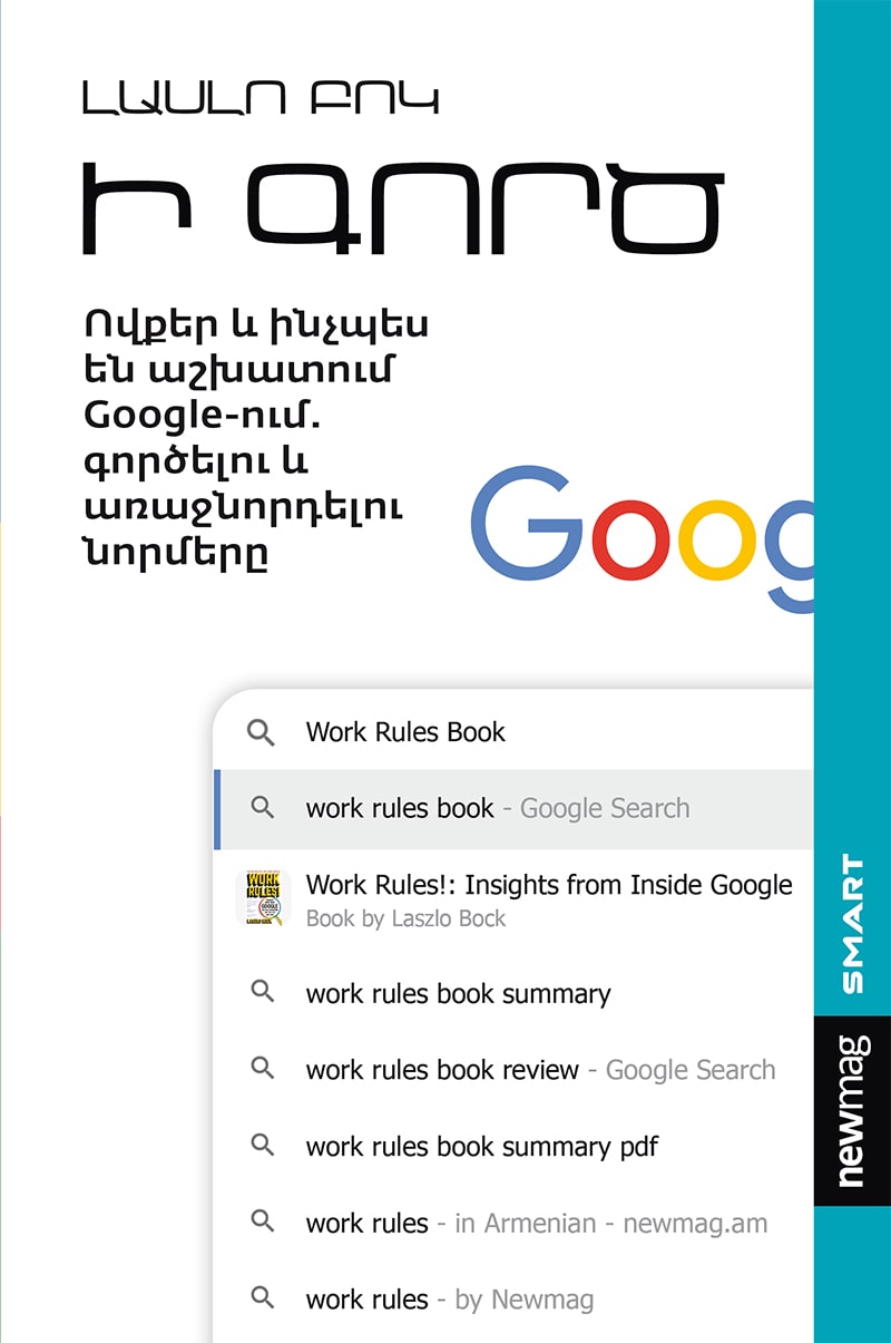 Հիմնվելով վարքագծային տնտեսագիտության վերջին հետազոտությունների եւ մարդկային հոգեբանության խորքային ընկալումների վրա՝ «Ի գործը» բերում է ճանաչված, բայց աշխատանքի համար ոչ լավագույն ընկերությունների օրինակները եւ ներկայացնում պակաս հայտնի ընկերությունները, որոնք տպավորիչ արդյունքների են հասնում սեփական աշխատակիցներին արժեւորելու եւ նրանց լսելու շնորհիվ: Բոկն օգնում է ներսից տեսնել Google-ի կառավարման խոհանոցը. հաջողակ ընկերություն, որը տարիներ շարունակ համարվում է աշխատանքի լավագույն վայրերից մեկը եւ որտեղ կյանքի են կոչվում երկար տարիների հետազոտությունների արդյունքները: