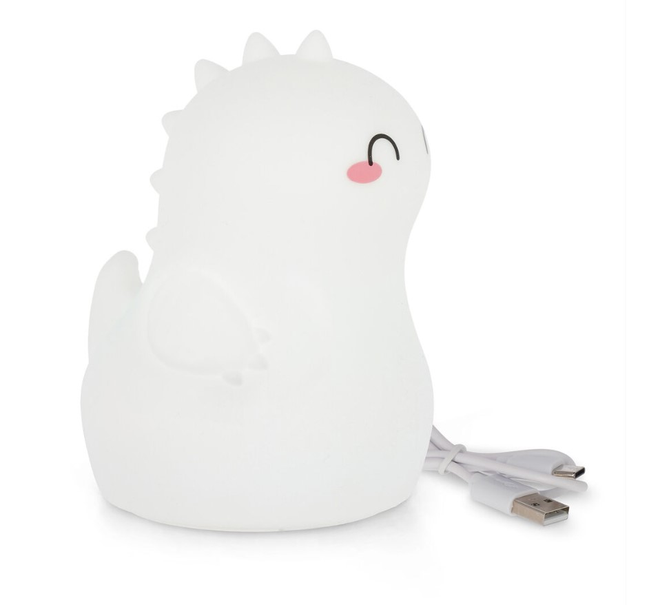 This little friend keeps children company as they drift off to sweet dreams. The Dino Soft Dreams Rechargeable Night Light by Legami creates calming light in their bedroom with 5 soft colours. USB chargeable Charging cable included Material: plastic, silicone